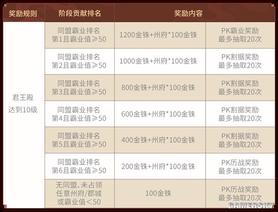 以同盟霸业值排名结算赛季奖励