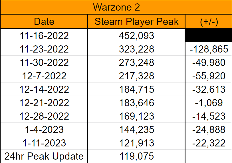 《使命召唤:战区2》自2022年11月发布以来的数据一直都不太好,游戏中的各种问题加上外挂的原因导致玩家的游戏体验不好,大量的玩家因为种种原因离开了游戏,而这个情况仍在持续下去。