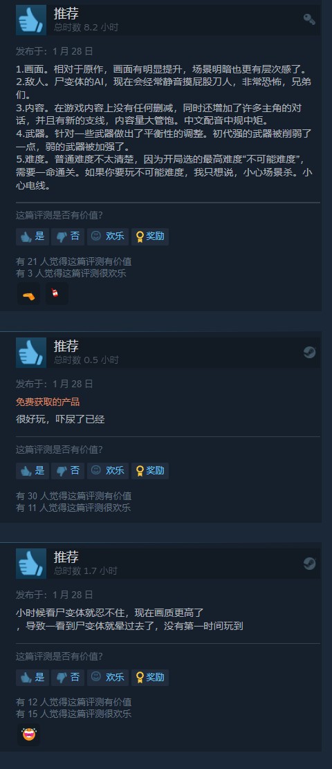 评论区,游玩了超过4小时的用户表示《死亡空间:重制版》是一个非常用心的重制,“新版游戏修改了一小部分路线,让整个流程更流畅,获取武器有专属动作,部分武器副模式变得有用了,花费能量节点开门的恶心设定似乎移除了,现在转为需要访问等级来解锁特定门”。