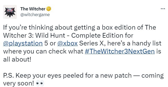 《巫师3》次世代实体版发售 新补丁即将上线(巫师3次世代配置要求)