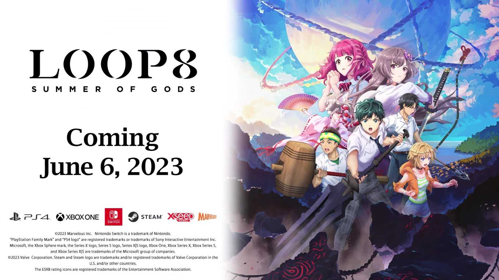 《LOOP8降神》(Loop8: Summer of Gods)发行商XSEED Games和Marvelous Europe宣布,该作将会在6月6日上线欧美地区的PLayStation 4、Xbox One、Switch和PC(Steam)平台,游戏售价49.99美元,感兴趣的玩家可以了解一下。