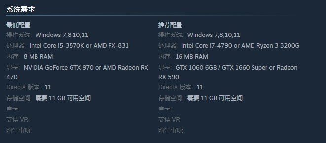 显卡: NVIDIA GeForce GTX 970 or AMD Radeon RX 470