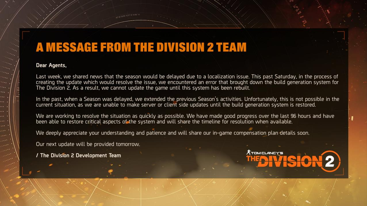 该工作室承诺将尽快解决该问题,并已经在过去的96个小时内取得了不错的进展。由于这些问题,《全境封锁2》的玩家也将获得补偿,这些将在明天的更新中详细说明。