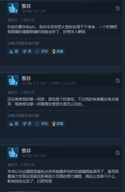 目前该游戏的评论反响不错,玩家表示游戏设计内容丰富,非常适合喜欢模拟游戏的玩家,但是游戏也存在例如卡顿穿模等类似的bug。