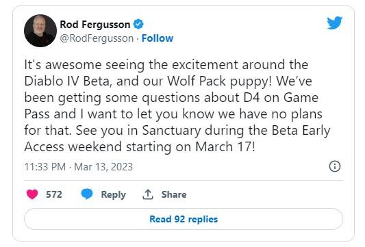 《暗黑破坏神4》测试版本即将于3月17日至19日进行测试,玩家可以通过一些手段获取到游戏的抢先体验资格,而之后游戏将会在3月24日至26日对全部玩家开放测试,目前有玩家关注到游戏会不会在xgp登陆。