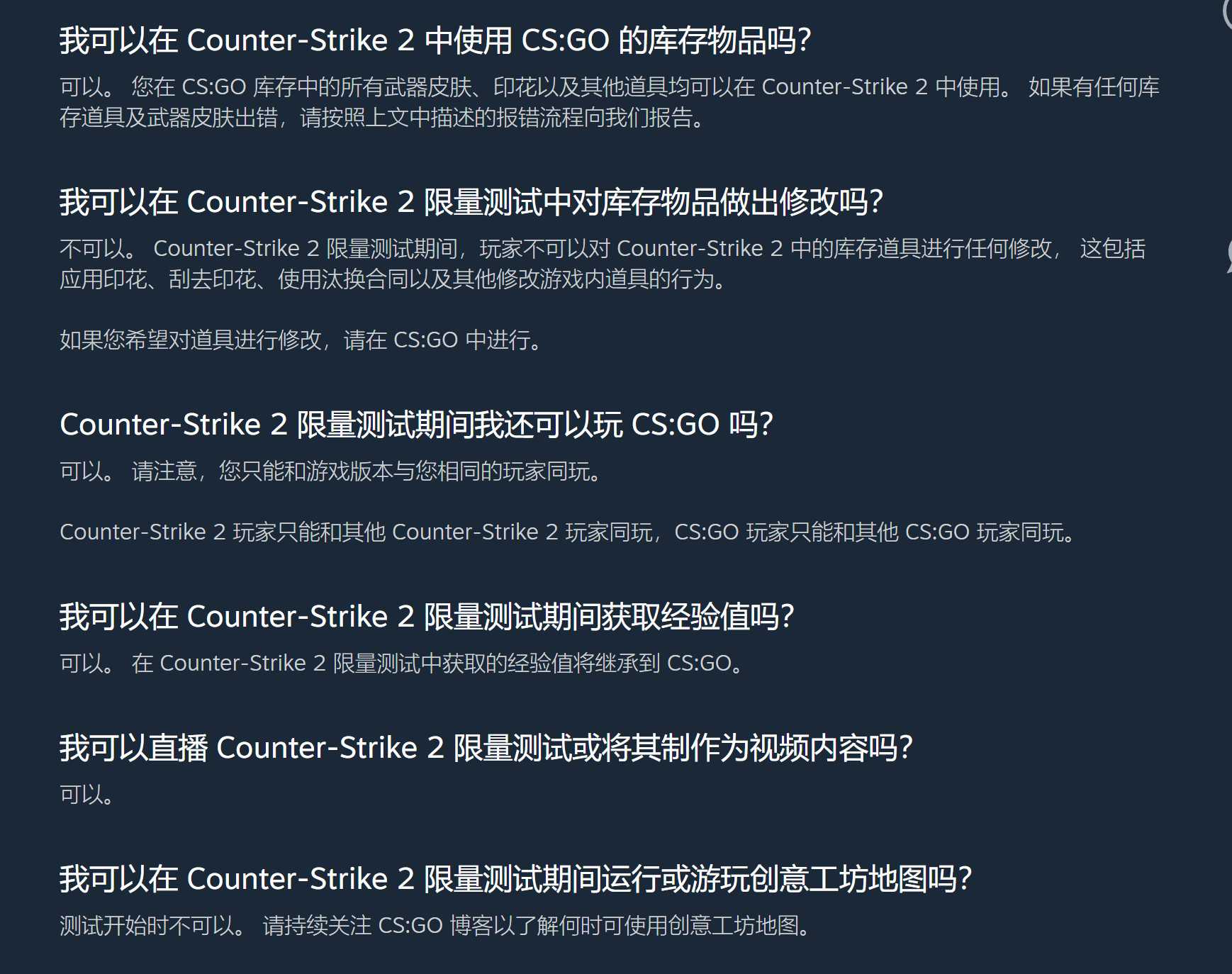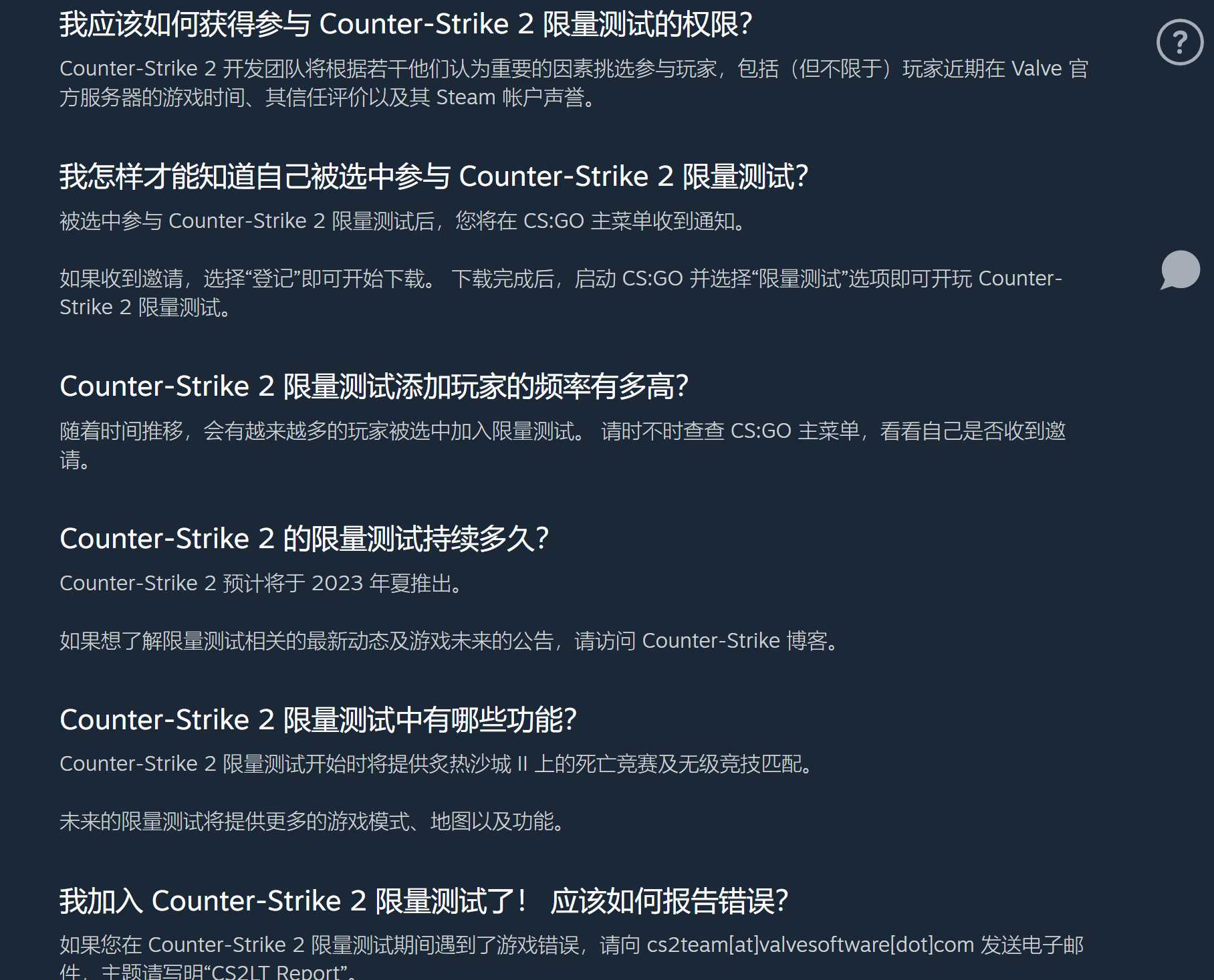 《反恐精英2》限量测试官方FAQ:https://steamcommunity.com/faqs/steam-help/view/5ED2-ED8E-81F4-0C18