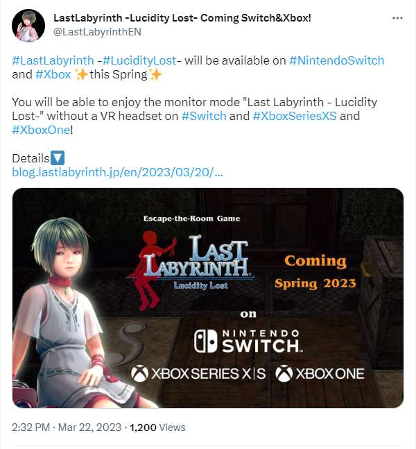 此外官方还宣布,将于今年春季发布Xbox Series、Xbox One和Switch版本的非VR版游戏,玩家同样无需VR设备就可以体验《最后的迷宫》。
