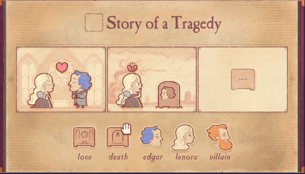 《Storyteller》是一款利用视觉语言元素编造故事的游戏。每一关都包含几种场景和若干角色,你将通过调整游戏元素的先后顺序,看它们之间如何前后呼应,编造出一个切合给定标题的叙述性故事。