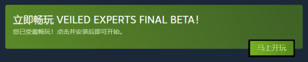 - 预下载只限于已被接受完申请测试资格的玩家,即VEILED EXPERTS FINAL BETA页面上已显示【马上开玩】