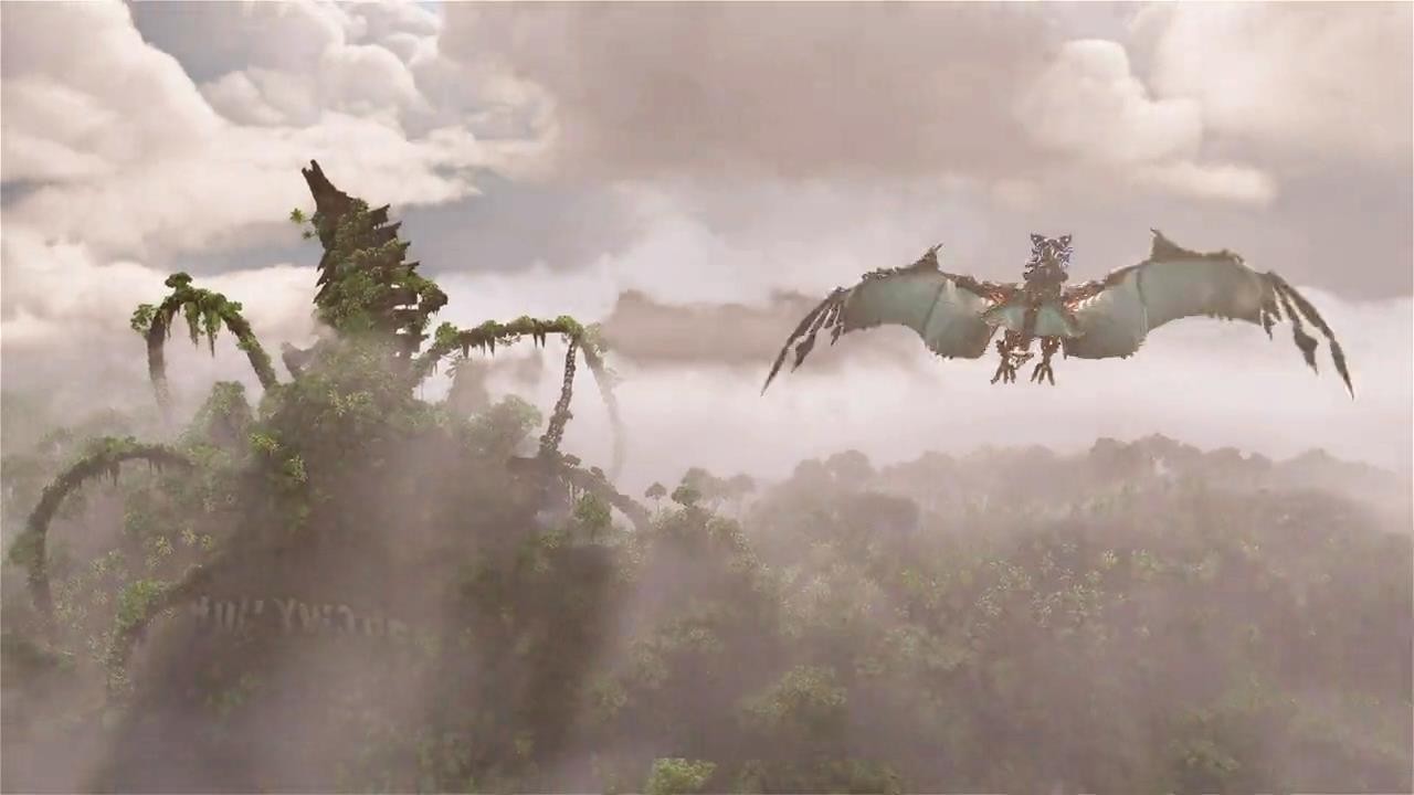 埃洛伊可以乘坐流水之翼飞上天空,还能潜入水底。此外从视频中还可以看到云层区域的气象变化,比如雷云等。在云层中,玩家将能够探索隧道、洞穴和其他让飞行变得有趣的惊喜。