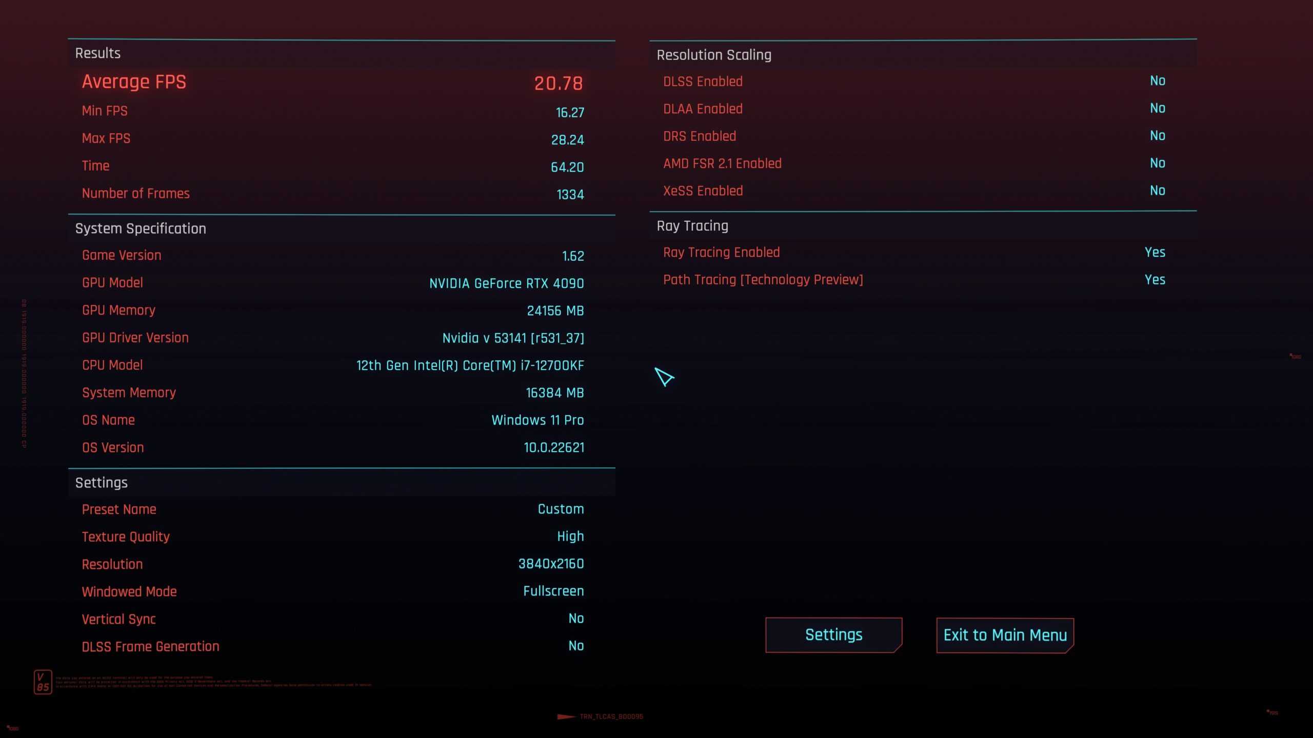 原生4K、没有任何AI协助,平均FPS:20.78