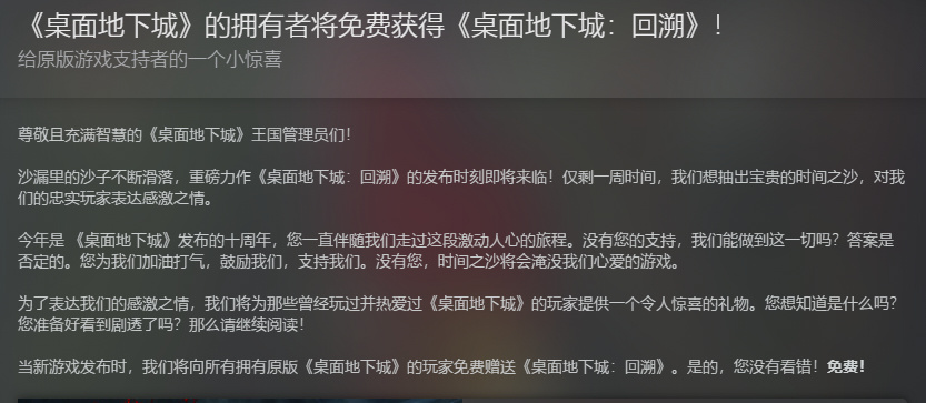 如果你在今天之前,也就是《桌面地下城:回溯》上线前,已经拥有了原版《桌面地下城》,那么将免费获得《桌面地下城:回溯》。