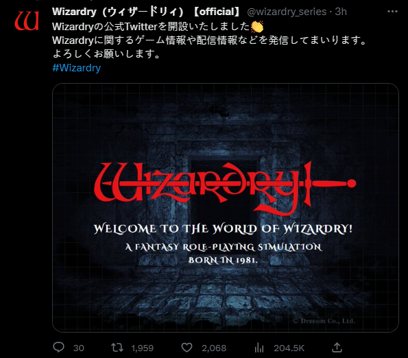 2020年10月时,日本游戏公司Drecom收购了包括Wizardry的一切国内外商标,今天突然开设官方推特,预示着公司或将再次重启这个经典IP,敬请期待后续消息。